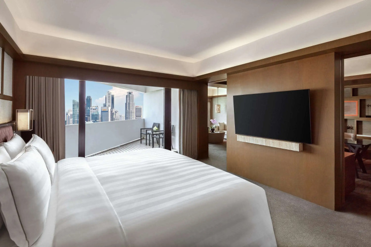 新加坡泛太平洋酒店的寬敞客房均配備了享有城市全景的全尺寸窗戶。所有客房均配備了平面衛星電視、大理石浴室和辦公桌。